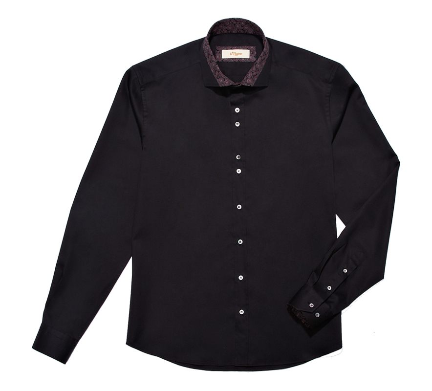佩斯利纹拼接黑色修身衬衫